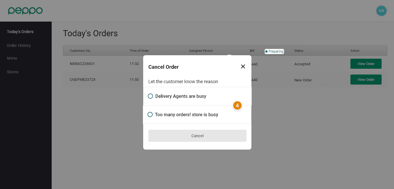 4 - Select the reason for the cancellation from the given option and click Cancel as shown in image below