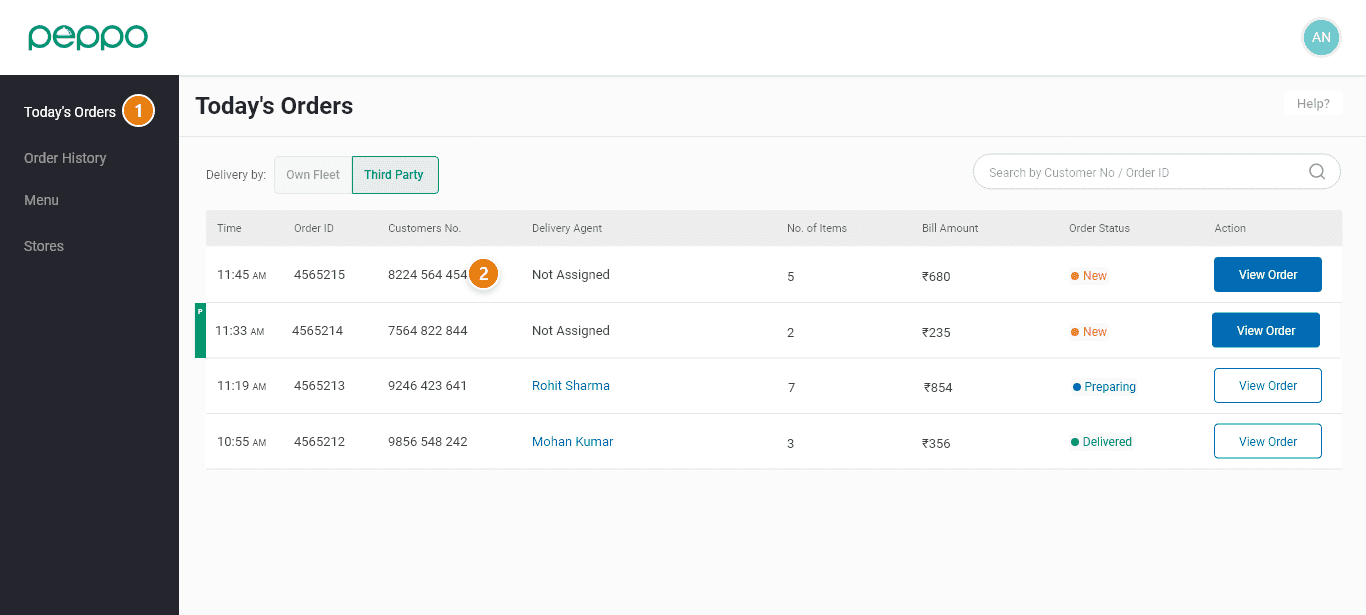 2 - You will see the customer’s mobile number against his order. Use the mobile number to contact the customer.