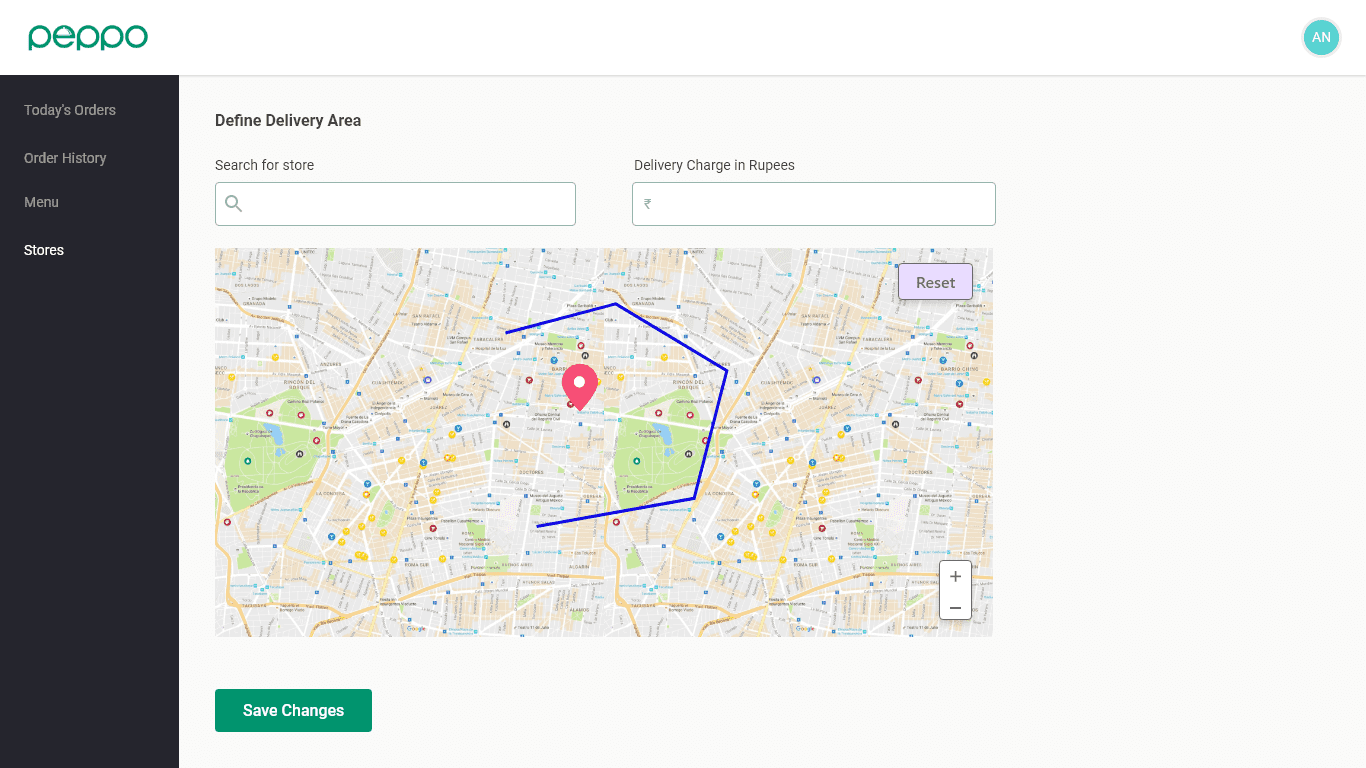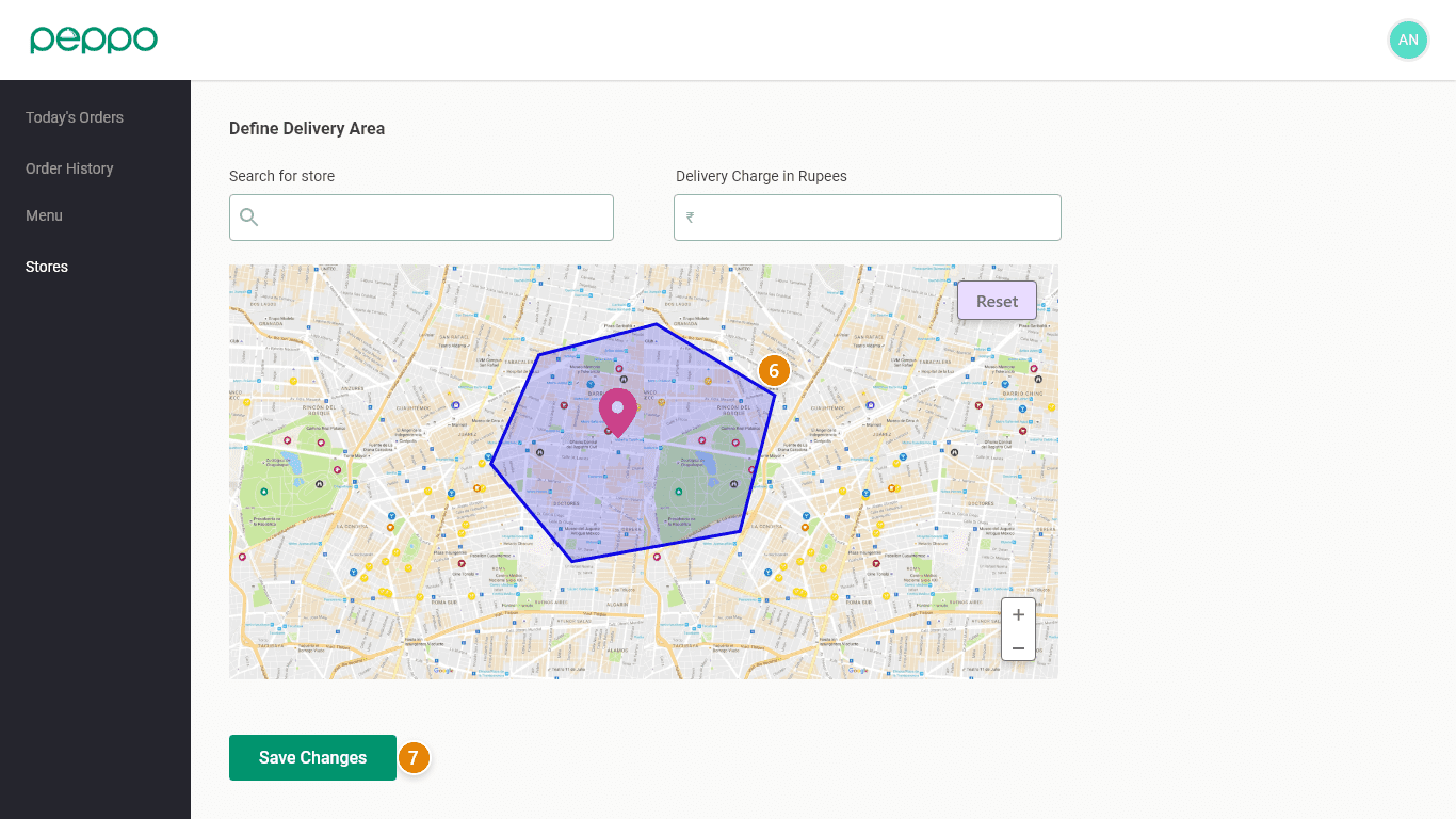 7 - Click on “SAVE CHANGES” once you draw the delivery area.