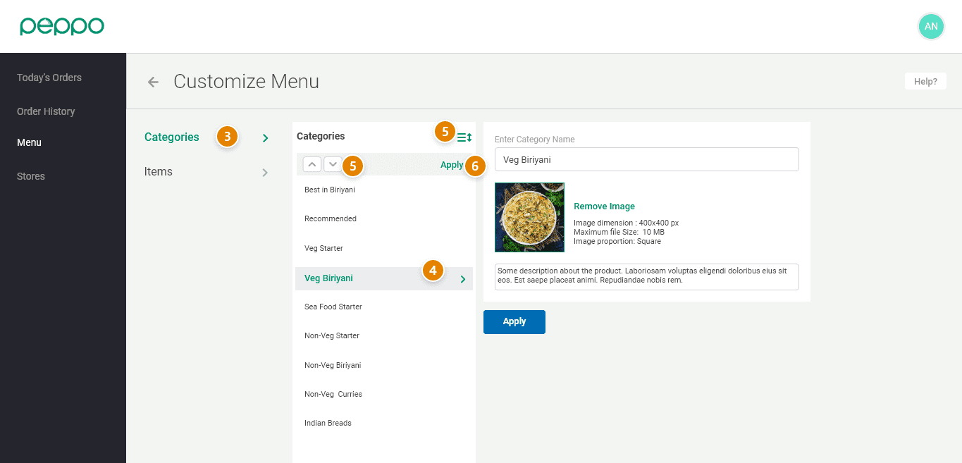 4 - Select the category whose ordering needs to be changed.