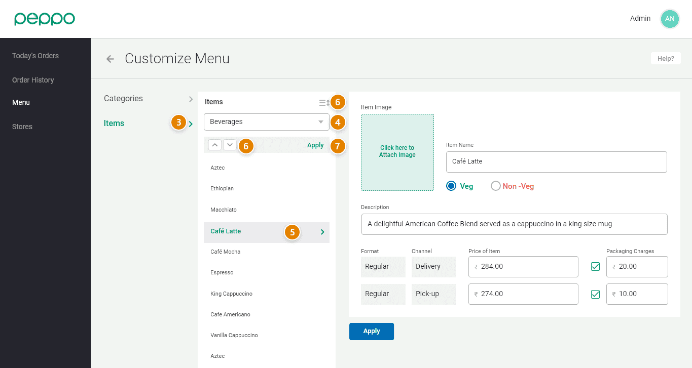 6 - Click on the “three lines” icon, and use the arrow to move the item up or down.