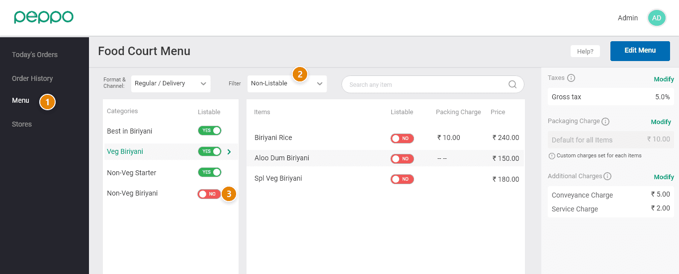1 - Go to the ‘Menu’ tab on the left.