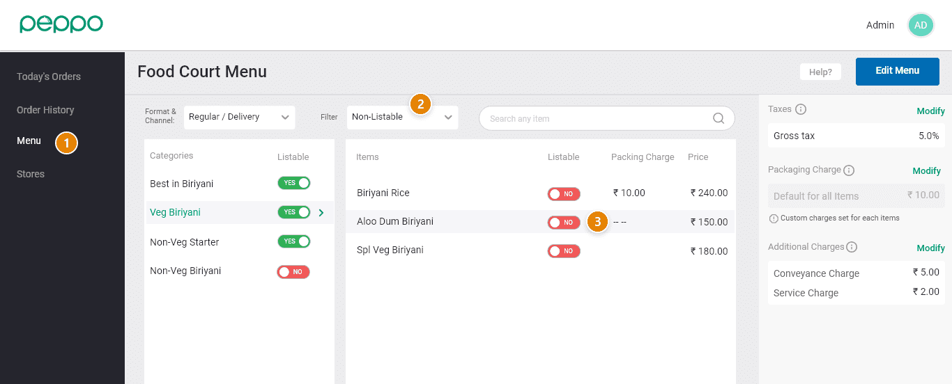 1 - Go to the ‘Menu’ tab on the left.