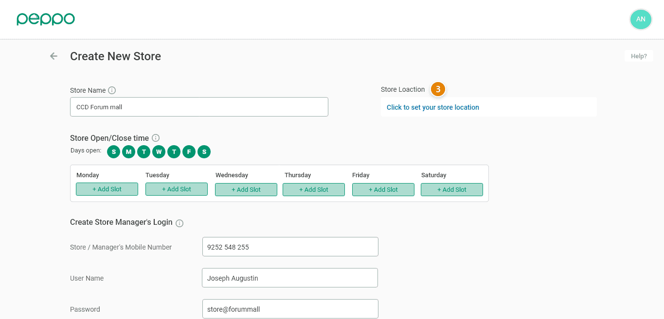 4 - Provide your store name and select the address. The other way is to share your current location using the circle marked if you are inside the store.