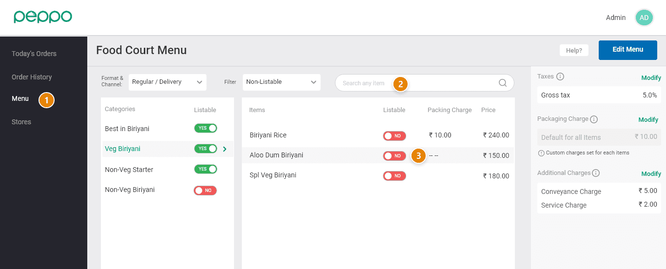 All Collections › Menu related changes › General › Unlist an item