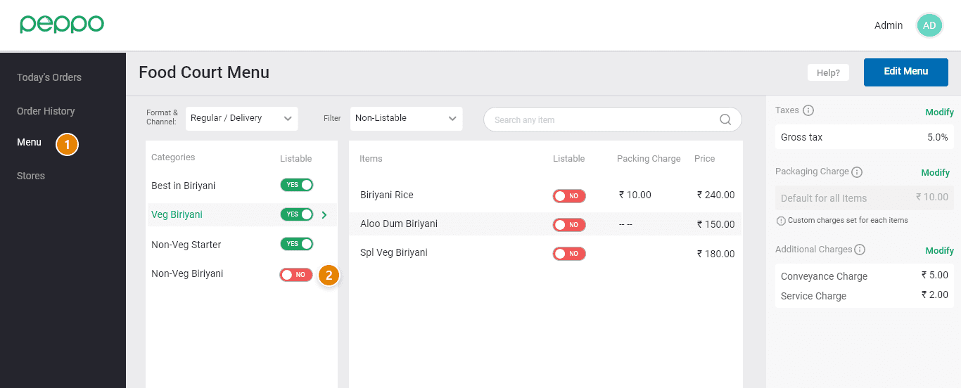 2 - Change the toggle to ‘No’ for the category that you want to unlist.